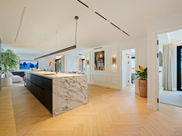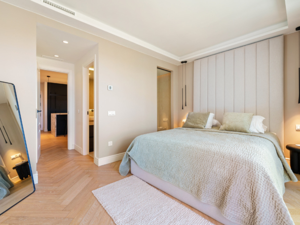 Located in the highly sought-after area of La Cerquilla, this beautifully refurbished penthouse offers a refined blend of contemporary living and warm Scandinavian design. Finished to an exceptional standard throughout, the property delivers a luxurious yet inviting atmosphere, ideal for both full-time living and high-end holiday use. The penthouse offers a built area of 183 m², complemented by an impressive 181 m² of terraces, creating a seamless balance between indoor and outdoor living. The layout includes three generously sized bedrooms, each with its own en suite bathroom, as well as an additional guest toilet. Bathrooms benefit from underfloor heating, while the entire home features elegant herringbone oak flooring, ultra-UV triple-glazed windows, and double glazing, ensuring comfort, energy efficiency, and year-round enjoyment. The open plan living and dining area flows effortlessly onto a large private terrace, where panoramic sea and mountain views take centre stage. This outdoor space is fully equipped with a high-quality outdoor kitchen and barbecue area, making it perfect for entertaining or relaxing in the Marbella climate. Carefully selected UV-resistant plants enhance the terrace, adding privacy and a natural feel. On the upper level, residents enjoy a private swimming pool and expansive terraces with breathtaking views across the sea, lake and surrounding mountains. These elevated outdoor spaces offer a true sense of exclusivity and tranquillity. The property is sold fully furnished and includes a modern, fully fitted kitchen, fitted wardrobes, and air conditioning throughout. Additional features include two underground parking spaces, two golf buggy spaces, a private storage room and access to a communal pool and landscaped gardens within a secure gated community. Recently refurbished and presented in excellent condition, this penthouse is ideally positioned close to beaches, top golf courses and the lifestyle attractions of Puerto Banús. Schools, shops and everyday amenities are also within easy reach. Situated in Nueva Andalucía, the property offers a rare combination of convenience, privacy and luxury, making it a standout opportunity in one of Marbella’s most prestigious residential areas.