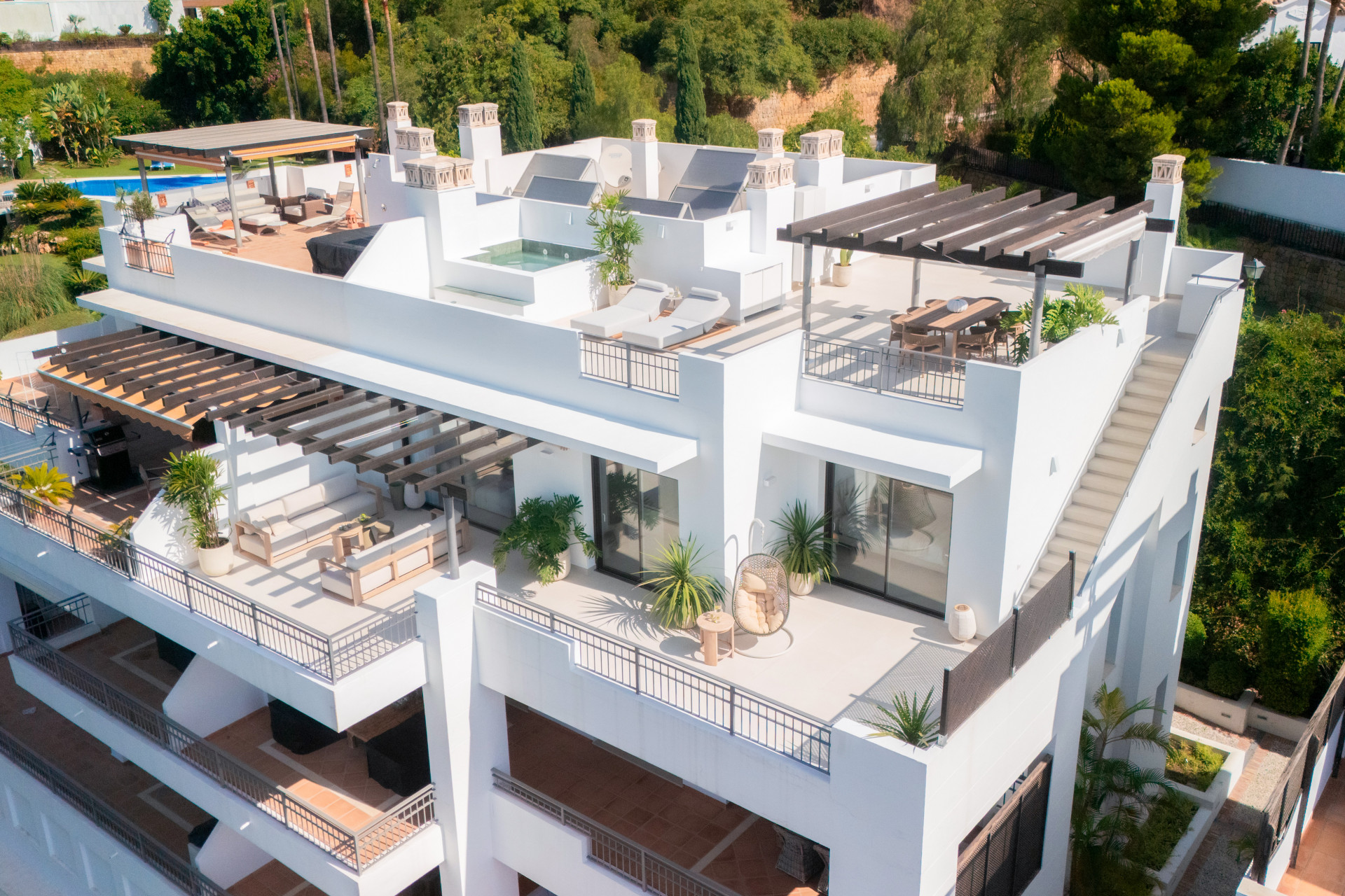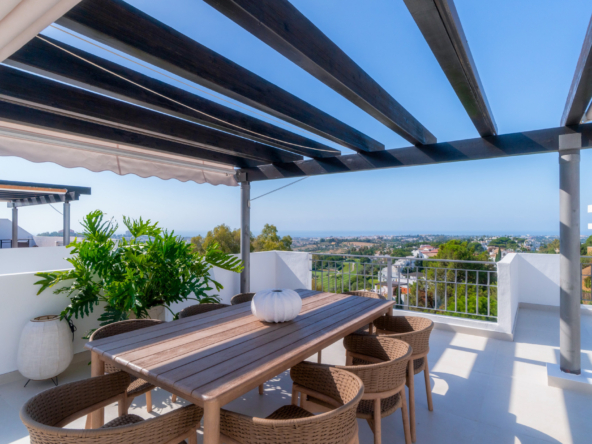 Set high above the lush landscape of La Quinta in Benahavís, this exceptional duplex penthouse offers a rare combination of luxury, privacy, and panoramic views. Just seven minutes from Puerto Banús and even closer to the top three golf courses in Nueva Andalucía’s Golf Valley, the location is ideal for both golf lovers and those seeking the ultimate Costa del Sol lifestyle.