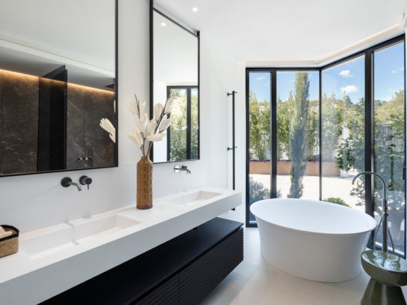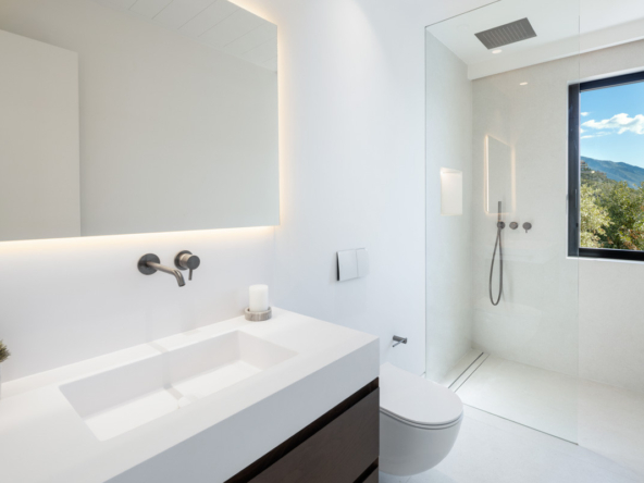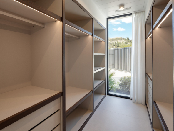 The ground floor is dedicated to refined living and entertaining. It features a TV lounge, a formal living room with an oversized fireplace, and a fully fitted Modulnova kitchen. A walk in wine cellar enhances the dining experience, while expansive terraces provide an al fresco kitchen, dining area, and infinity pool overlooking the Mediterranean.
