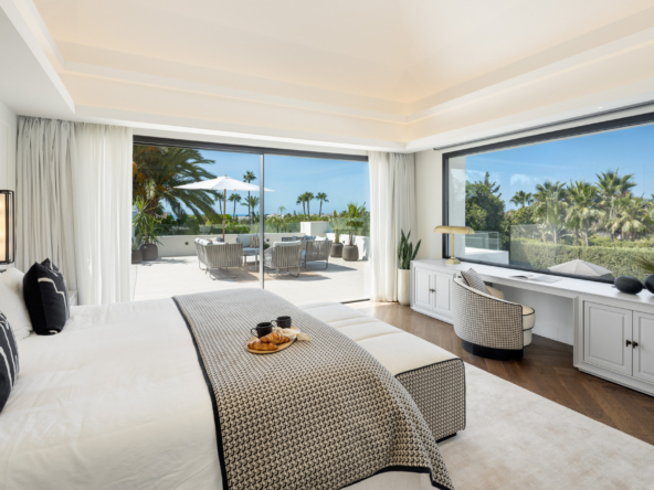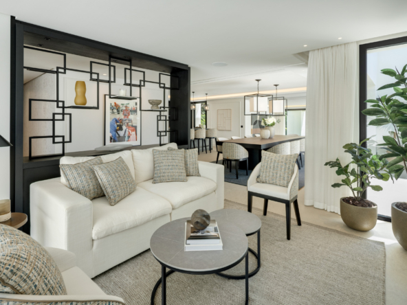 Villa Malibu is a striking modern villa for sale in the heart of Nueva Andalucía, one of the most sought after residential areas on the Costa del Sol. Designed by architect Francisco Martinez Galvan, it blends Mediterranean elegance with modern functionality and exceptional build quality. With serene sea views, landscaped gardens, and a custom pool, this home offers privacy, comfort, and sophistication in a prime location.
