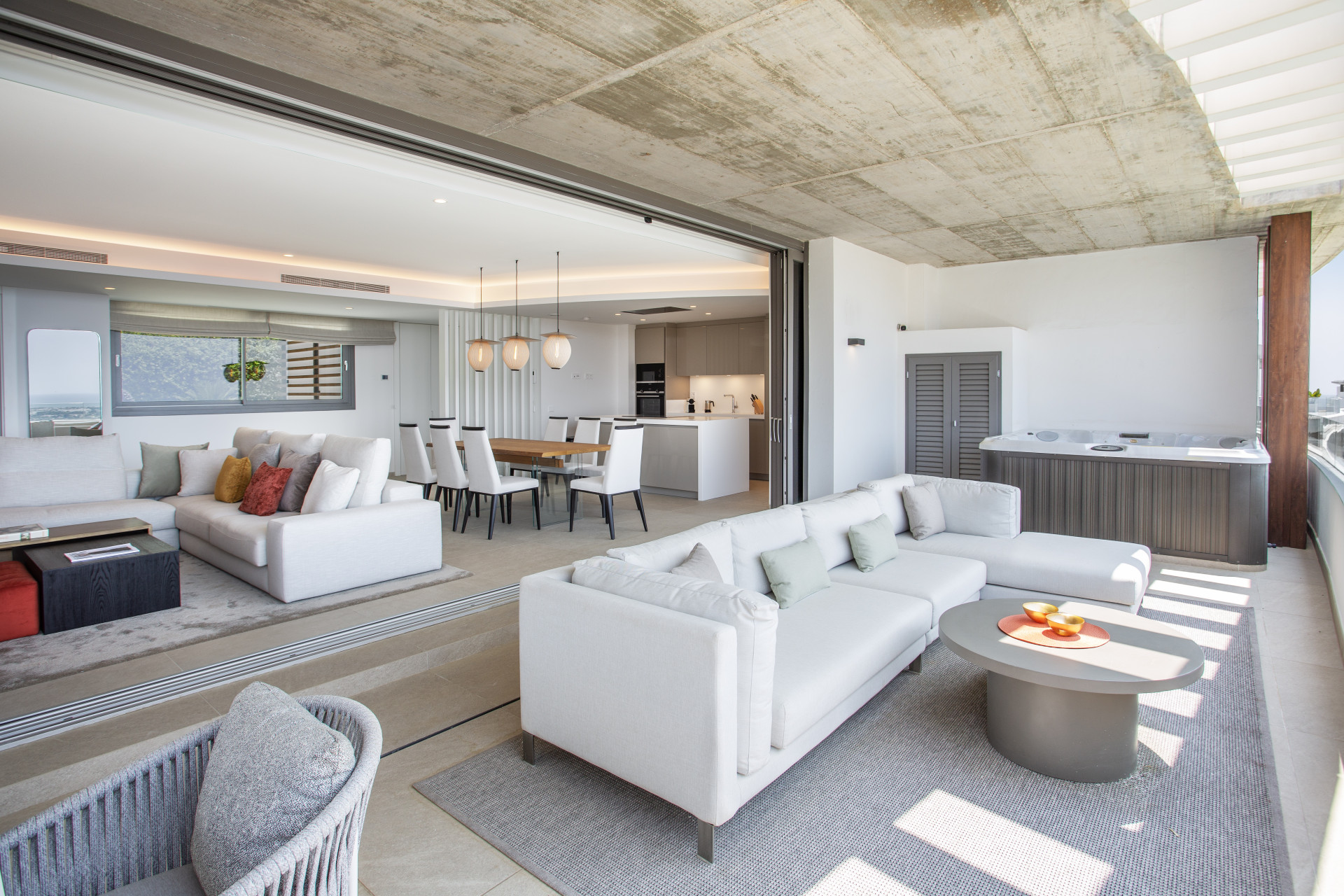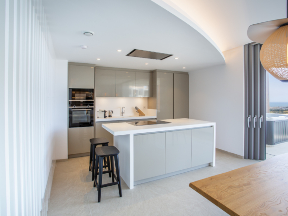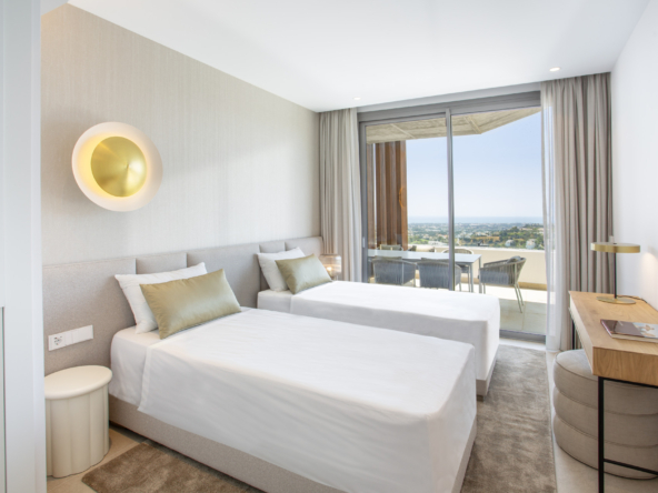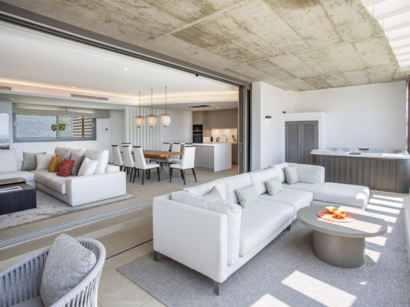 This spectacular one of a kind luxury penthouse is presented in perfect condition within the Quercus phase of Real de la Quinta, a brand new gated community set high above La Quinta golf. The property radiates style and sophistication, with a south west orientation and panoramic 180 degree views that stretch across the sea, Gibraltar, Africa, and the surrounding mountains. It offers three bedrooms, all facing the sea and opening directly onto the terrace. The expansive terrace includes a jacuzzi and both covered and open sections, creating the perfect setting for outdoor living. Fully furnished by the design team at Ambience, the home is move in ready. The master suite features a large walk in closet and a luxurious en suite bathroom with a stand alone bath overlooking the mountains, as well as a walk in shower. Two further bedrooms share the same quality finishes, while a guest toilet and separate laundry room add practicality. The property includes two generous underground parking spaces and a storage room of more than seventeen square metres, with lift access to the penthouse level. The communal swimming pool lies just sixty metres away, offering some of the best sea views on the coastline. The resort itself is designed to provide an exceptional lifestyle. Residents enjoy 24 hour security, a lake club with sandy beaches, a large lake for water sports, an indoor pool, spa, gym, restaurant, and tennis and paddle courts. A six hole executive golf course is also under construction. This penthouse combines modern design, unrivalled amenities, and extraordinary views, making it one of the finest residences on the Costa del Sol.